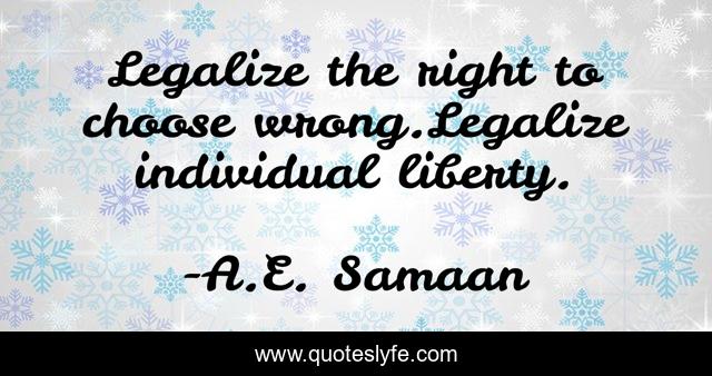"A.E. Samaan Quotes." Quoteslyfe.com, 2025. Fri. 05 Dec. 2025. <https://www.quoteslyfe.com/quote/Legalize-the-right-to-choose-wrong-Legalize-55030>.