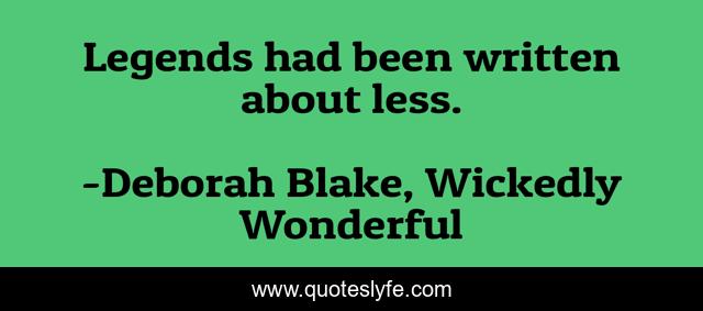"Deborah Blake, Wickedly Wonderful Quotes." Quoteslyfe.com, 2025. Sun. 07 Dec. 2025. <https://www.quoteslyfe.com/quote/Legends-had-been-written-about-less-233861>.