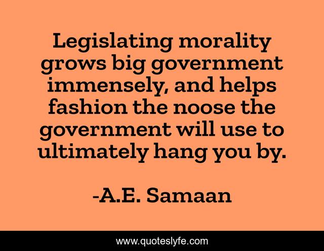 "A.E. Samaan Quotes." Quoteslyfe.com, 2025. Fri. 05 Dec. 2025. <https://www.quoteslyfe.com/quote/Legislating-morality-grows-big-government-immensely-and-55152>.