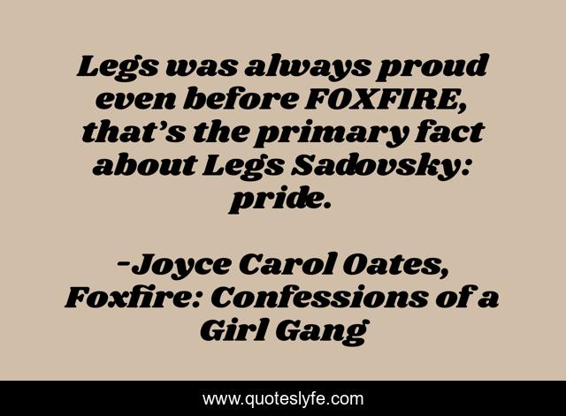 "Joyce Carol Oates, Foxfire: Confessions of a Girl Gang Quotes." Quoteslyfe.com, 2025. Sat. 06 Dec. 2025. <https://www.quoteslyfe.com/quote/Legs-was-always-proud-even-before-FOXFIRE-59330>.