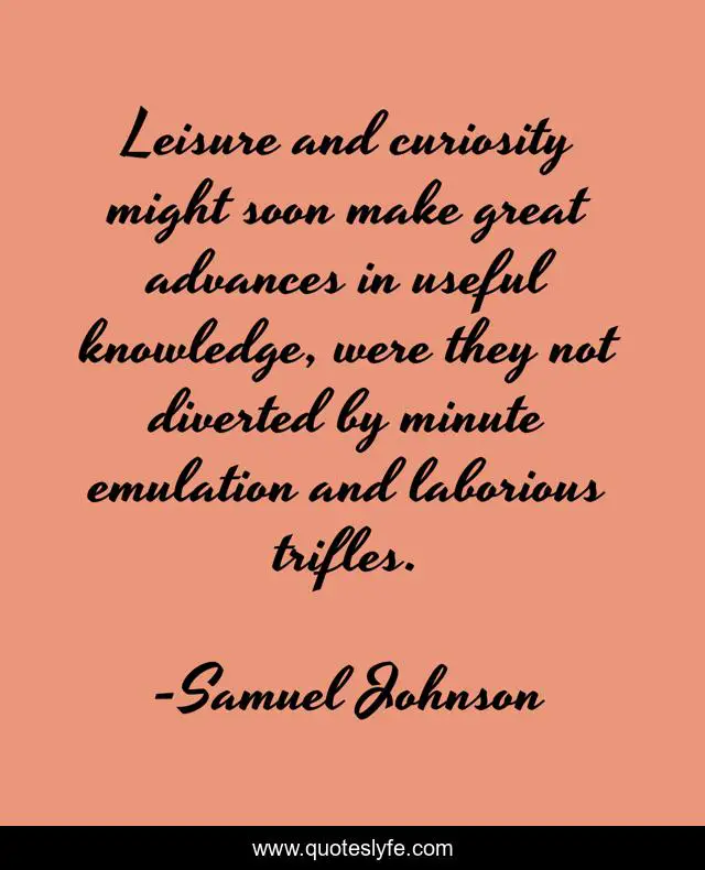 This page presents the quote "Leisure and curiosity might soon make great advances in useful knowledge, were they not diverted by minute emulation and laborious trifles.". Author of this quote is Samuel Johnson. This quote is about great, curiosity, leisure,.