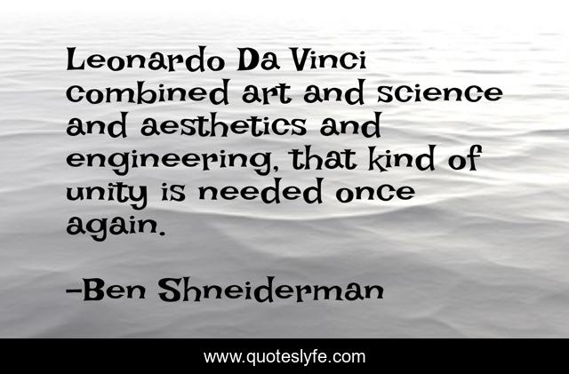 This page presents the quote "Leonardo Da Vinci combined art and science and aesthetics and engineering, that kind of unity is needed once again.". Author of this quote is Ben Shneiderman. This quote is about unity, art, engineering,.