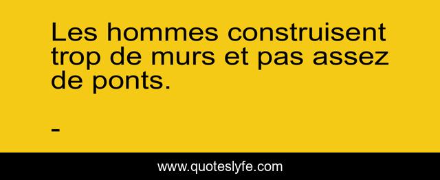 This page presents the quote "Les hommes construisent trop de murs et pas assez de ponts.". Author of this quote is . .