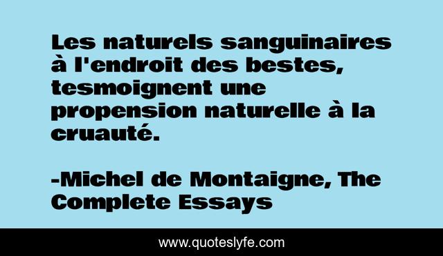 "Michel de Montaigne, The Complete Essays Quotes." Quoteslyfe.com, 2025. Mon. 08 Dec. 2025. <https://www.quoteslyfe.com/quote/Les-naturels-sanguinaires-l-endroit-des-bestes-8716>.