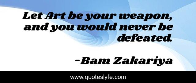 This page presents the quote "Let Art be your weapon, and you would never be defeated.". Author of this quote is Bam Zakariya. This quote is about art, reality,.