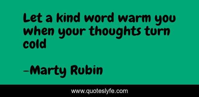 This page presents the quote "Let a kind word warm you when your thoughts turn cold". Author of this quote is Marty Rubin. This quote is about kindness, a-kind-word, coldness,.