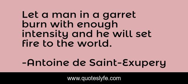 This page presents the quote "Let a man in a garret burn with enough intensity and he will set fire to the world.". Author of this quote is Antoine de Saint-Exupery. .