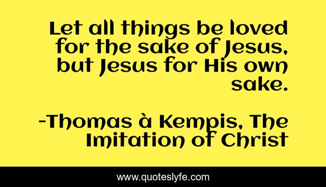 This page presents the quote "Let all things be loved for the sake of Jesus, but Jesus for His own sake.". Author of this quote is Thomas à Kempis, The Imitation of Christ. This quote is about love, affection, jesus,.