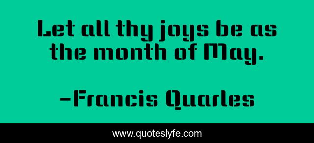 This page presents the quote "Let all thy joys be as the month of May.". Author of this quote is Francis Quarles. This quote is about joy, month-of-may,.