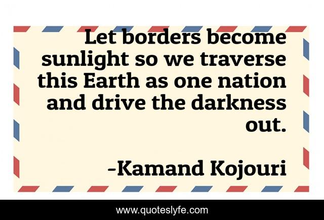 "Kamand Kojouri Quotes." Quoteslyfe.com, 2025. Fri. 05 Dec. 2025. <https://www.quoteslyfe.com/quote/Let-borders-become-sunlight-so-we-traverse-71556>.