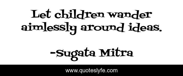 This page presents the quote "Let children wander aimlessly around ideas.". Author of this quote is Sugata Mitra. This quote is about teaching, educational-philosophy,.