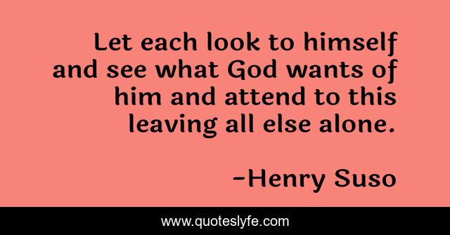 This page presents the quote "Let each look to himself and see what God wants of him and attend to this leaving all else alone.". Author of this quote is Henry Suso. .