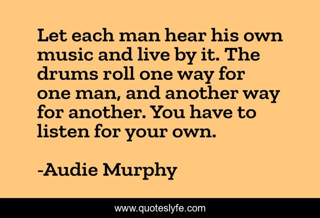 This page presents the quote "Let each man hear his own music and live by it. The drums roll one way for one man, and another way for another. You have to listen for your own.". Author of this quote is Audie Murphy. .
