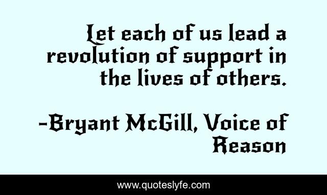 This page presents the quote "Let each of us lead a revolution of support in the lives of others.". Author of this quote is Bryant McGill, Voice of Reason. This quote is about unity, peace, solidarity,.
