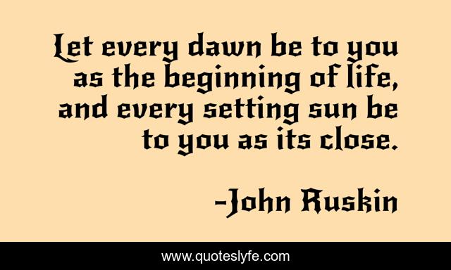 This page presents the quote "Let every dawn be to you as the beginning of life, and every setting sun be to you as its close.". Author of this quote is John Ruskin. This quote is about sun, life, beginning,.