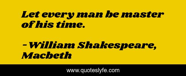 This page presents the quote "Let every man be master of his time.". Author of this quote is William Shakespeare, Macbeth. This quote is about control, life, self-determination, time,.