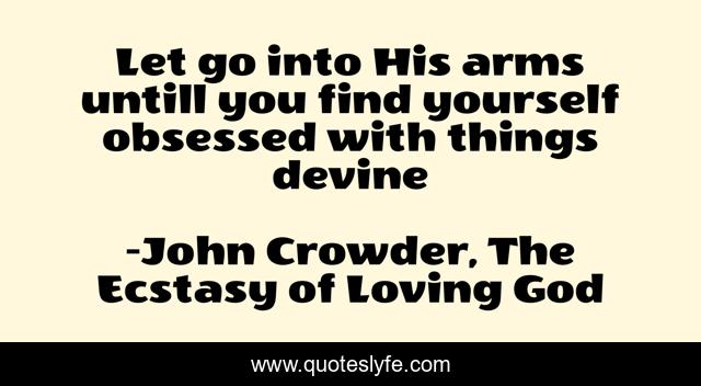 This page presents the quote "Let go into His arms untill you find yourself obsessed with things devine". Author of this quote is John Crowder, The Ecstasy of Loving God. This quote is about devine-love, obsessions, devine, ecstasy, obessed, obsession, loving-god,.