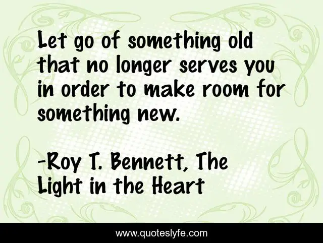 "Roy T. Bennett, The Light in the Heart Quotes." Quoteslyfe.com, 2025. Fri. 05 Dec. 2025. <https://www.quoteslyfe.com/quote/Let-go-of-something-old-that-no-2382>.