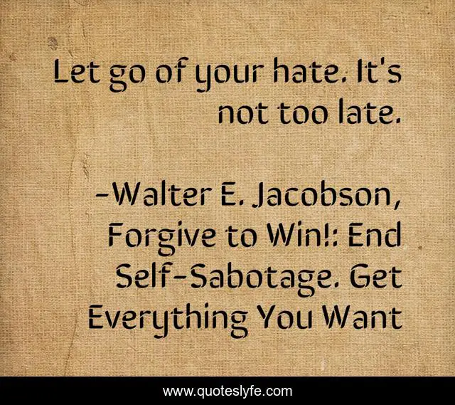 "Walter E. Jacobson, Forgive to Win!: End Self-Sabotage. Get Everything You Want Quotes." Quoteslyfe.com, 2025. Fri. 05 Dec. 2025. <https://www.quoteslyfe.com/quote/Let-go-of-your-hate-It-s-77903>.