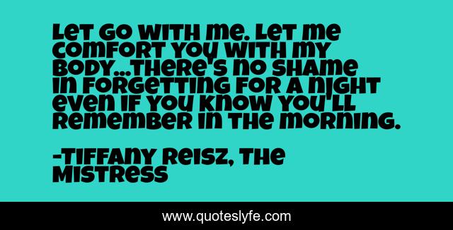 This page presents the quote "Let go with me. Let me comfort you with my body...there's no shame in forgetting for a night even if you know you'll remember in the morning.". Author of this quote is Tiffany Reisz, The Mistress. This quote is about comfort, love, affection,.