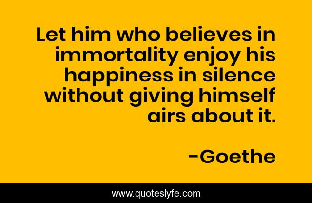 This page presents the quote "Let him who believes in immortality enjoy his happiness in silence without giving himself airs about it.". Author of this quote is Goethe. .