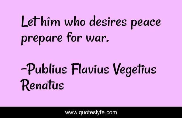 "Publius Flavius Vegetius Renatus Quotes." Quoteslyfe.com, 2025. Tue. 09 Dec. 2025. <https://www.quoteslyfe.com/quote/Let-him-who-desires-peace-prepare-for-285954>.