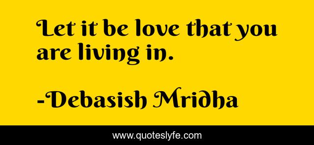 This page presents the quote "Let it be love that you are living in.". Author of this quote is Debasish Mridha. This quote is about let-it-be-love, love, philosophy, debasish-mridha, quotes, inspirational, enthusiasm, living-in-love, debasish-mridha-m-d,.