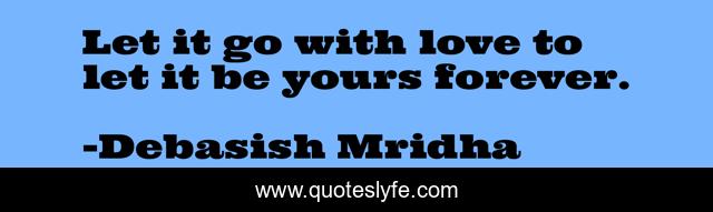 This page presents the quote "Let it go with love to let it be yours forever.". Author of this quote is Debasish Mridha. This quote is about philosophy, love, love-will-be-yours-forever, let-it-go, debasish-mridha, quotes, inspirational, enthusiasm, debasish-mridha-m-d,.