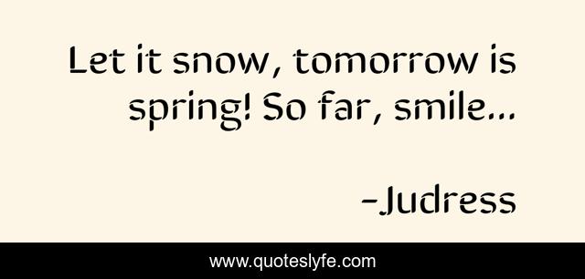 This page presents the quote "Let it snow, tomorrow is spring! So far, smile...". Author of this quote is Judress. .