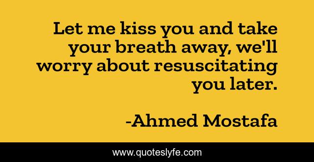 This page presents the quote "Let me kiss you and take your breath away, we'll worry about resuscitating you later.". Author of this quote is Ahmed Mostafa. This quote is about breathless, love, love-and-sayings, emotions, feelings, kiss, kissing, resuscitation, affection,.