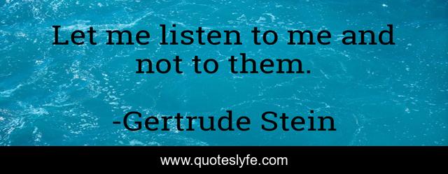 This page presents the quote "Let me listen to me and not to them.". Author of this quote is Gertrude Stein. .