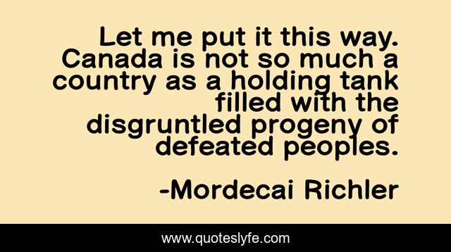 "Mordecai Richler Quotes." Quoteslyfe.com, 2025. Fri. 05 Dec. 2025. <https://www.quoteslyfe.com/quote/Let-me-put-it-this-way-Canada-165323>.
