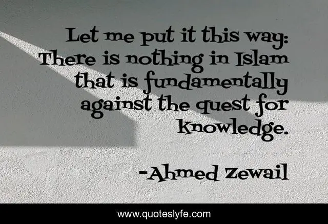 This page presents the quote "Let me put it this way: There is nothing in Islam that is fundamentally against the quest for knowledge.". Author of this quote is Ahmed Zewail. This quote is about me, way, islam,.