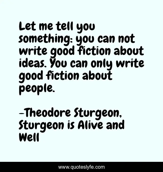 This page presents the quote "Let me tell you something: you can not write good fiction about ideas. You can only write good fiction about people.". Author of this quote is Theodore Sturgeon, Sturgeon is Alive and Well. .