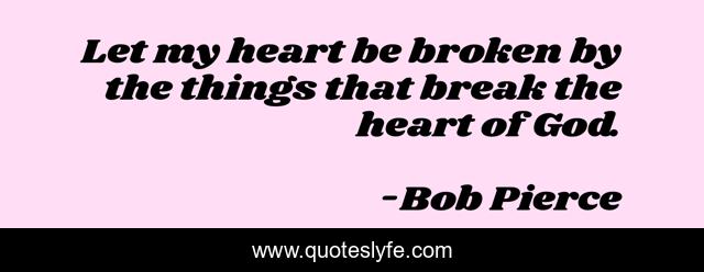 This page presents the quote "Let my heart be broken by the things that break the heart of God.". Author of this quote is Bob Pierce. This quote is about religion, christianity,.