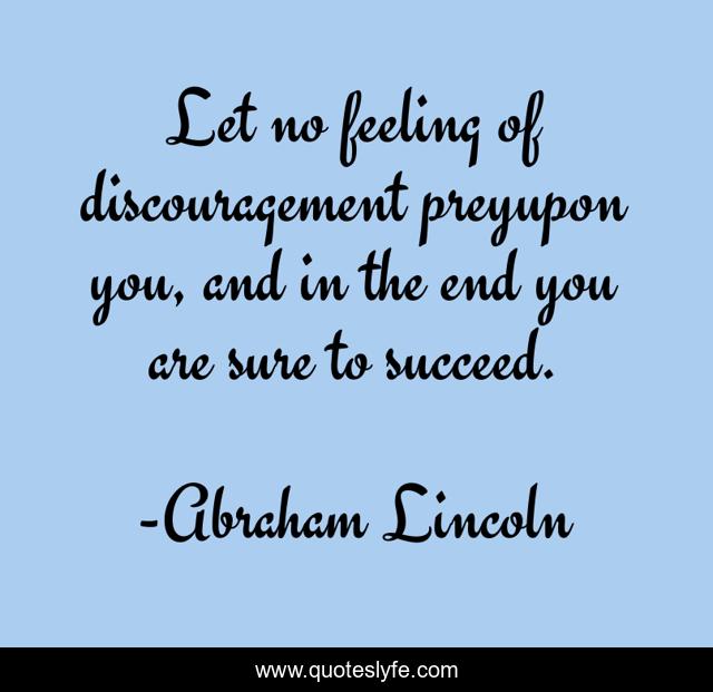 This page presents the quote "Let no feeling of discouragement preyupon you, and in the end you are sure to succeed.". Author of this quote is Abraham Lincoln. This quote is about enthusiasm, inspirational,.