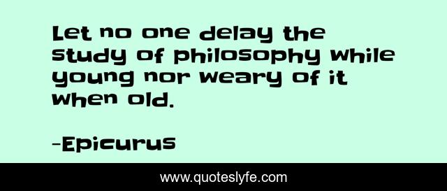 This page presents the quote "Let no one delay the study of philosophy while young nor weary of it when old.". Author of this quote is Epicurus. This quote is about epicurus, philosophy,.