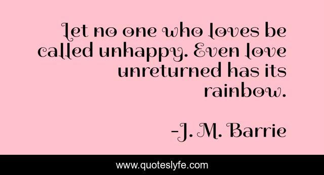 This page presents the quote "Let no one who loves be called unhappy. Even love unreturned has its rainbow.". Author of this quote is J. M. Barrie. .