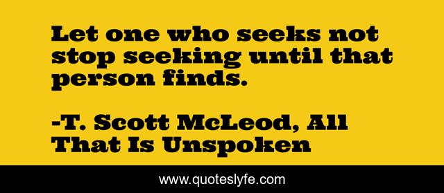 "T. Scott McLeod, All That Is Unspoken Quotes." Quoteslyfe.com, 2025. Mon. 08 Dec. 2025. <https://www.quoteslyfe.com/quote/Let-one-who-seeks-not-stop-seeking-199305>.