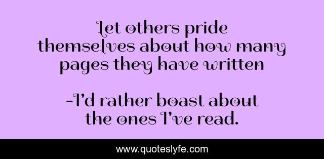This page presents the quote "Let others pride themselves about how many pages they have written". Author of this quote is I'd rather boast about the ones I've read.. .