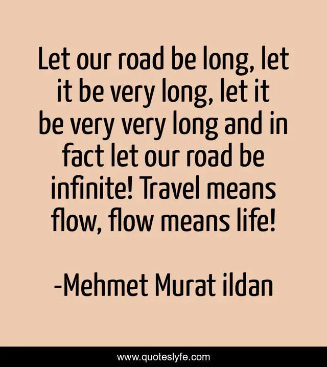 This page presents the quote "Let our road be long, let it be very long, let it be very very long and in fact let our road be infinite! Travel means flow, flow means life!". Author of this quote is Mehmet Murat ildan. .