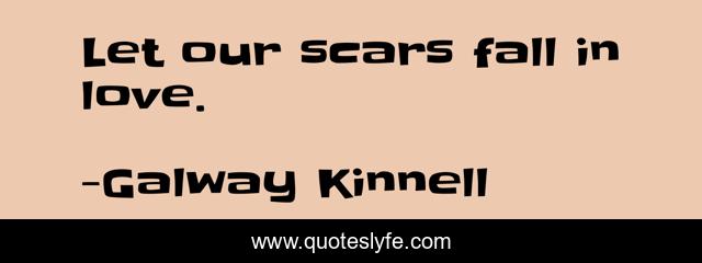 This page presents the quote "Let our scars fall in love.". Author of this quote is Galway Kinnell. .