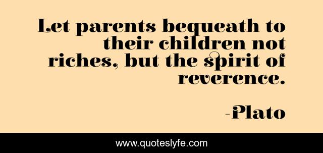 This page presents the quote "Let parents bequeath to their children not riches, but the spirit of reverence.". Author of this quote is Plato. This quote is about parents, children, spirit,.