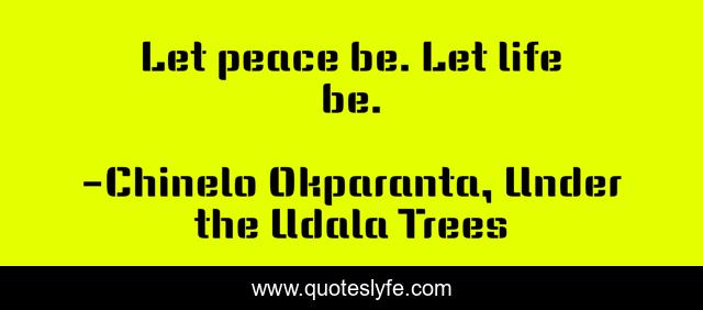 This page presents the quote "Let peace be. Let life be.". Author of this quote is Chinelo Okparanta, Under the Udala Trees. This quote is about acceptance, life-and-living, wisdom,.