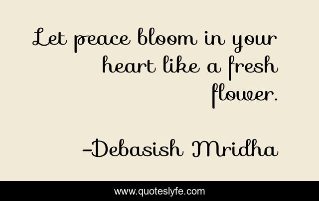 This page presents the quote "Let peace bloom in your heart like a fresh flower.". Author of this quote is Debasish Mridha. This quote is about heart, peace-blooms, fresh-flower, peace, debasish-mridha, quotes, inspirational, enthusiasm, debasish-mridha-m-d,.