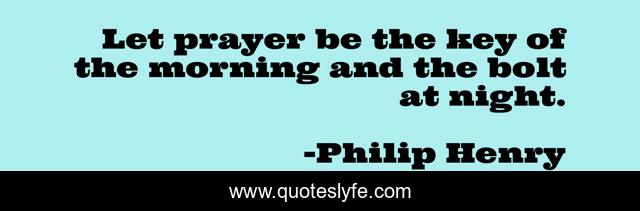 This page presents the quote "Let prayer be the key of the morning and the bolt at night.". Author of this quote is Philip Henry. .