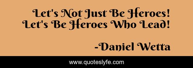 This page presents the quote "Let's Not Just Be Heroes! Let's Be Heroes Who Lead!". Author of this quote is Daniel Wetta. This quote is about heroes, leadership, inspiration,.