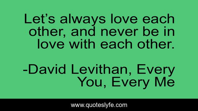 "David Levithan, Every You, Every Me Quotes." Quoteslyfe.com, 2025. Sat. 06 Dec. 2025. <https://www.quoteslyfe.com/quote/Let-s-always-love-each-other-and-251785>.