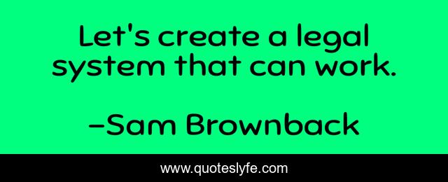 This page presents the quote "Let's create a legal system that can work.". Author of this quote is Sam Brownback. This quote is about create, work, system,.