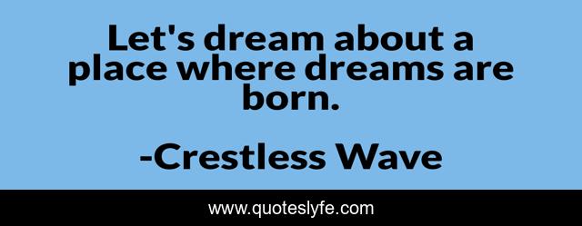 This page presents the quote "Let's dream about a place where dreams are born.". Author of this quote is Crestless Wave. This quote is about life, dreams,.